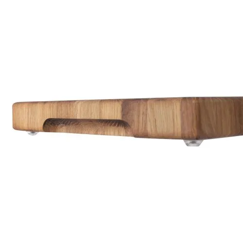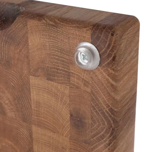 Разделочная доска выполнена из массива дуба и отлично подойдет для измельчения, нарезки и разделки абсолютно любых видов продуктов. Главная особенность данной доски состоит в том, что она изготовлена из отдельных брусков склеенных между собой. При этом древесные волокна расположены не вдоль самой доски, а поперек, благодаря чему на изделии не образуются царапины, и не попадают бактерии внутрь дерева, так как волокна полностью восстанавливают свою структуру. Доска имеет эстетичный внешний вид и подходит для сервировки и подачи готовых блюд.