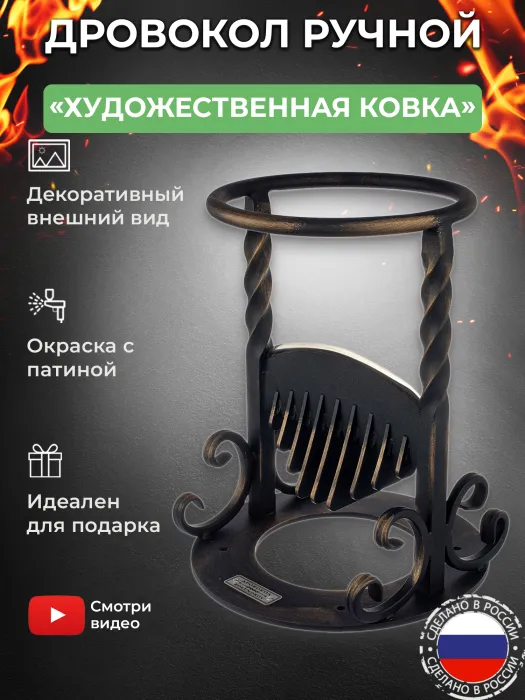 Дровокол «Художественная ковка» — это лучший дровокол для бытового использования, с прекрасным внешним видом, с элементами художественной ковки и патины нанесенной на его поверхность, для особо взыскательной публики.