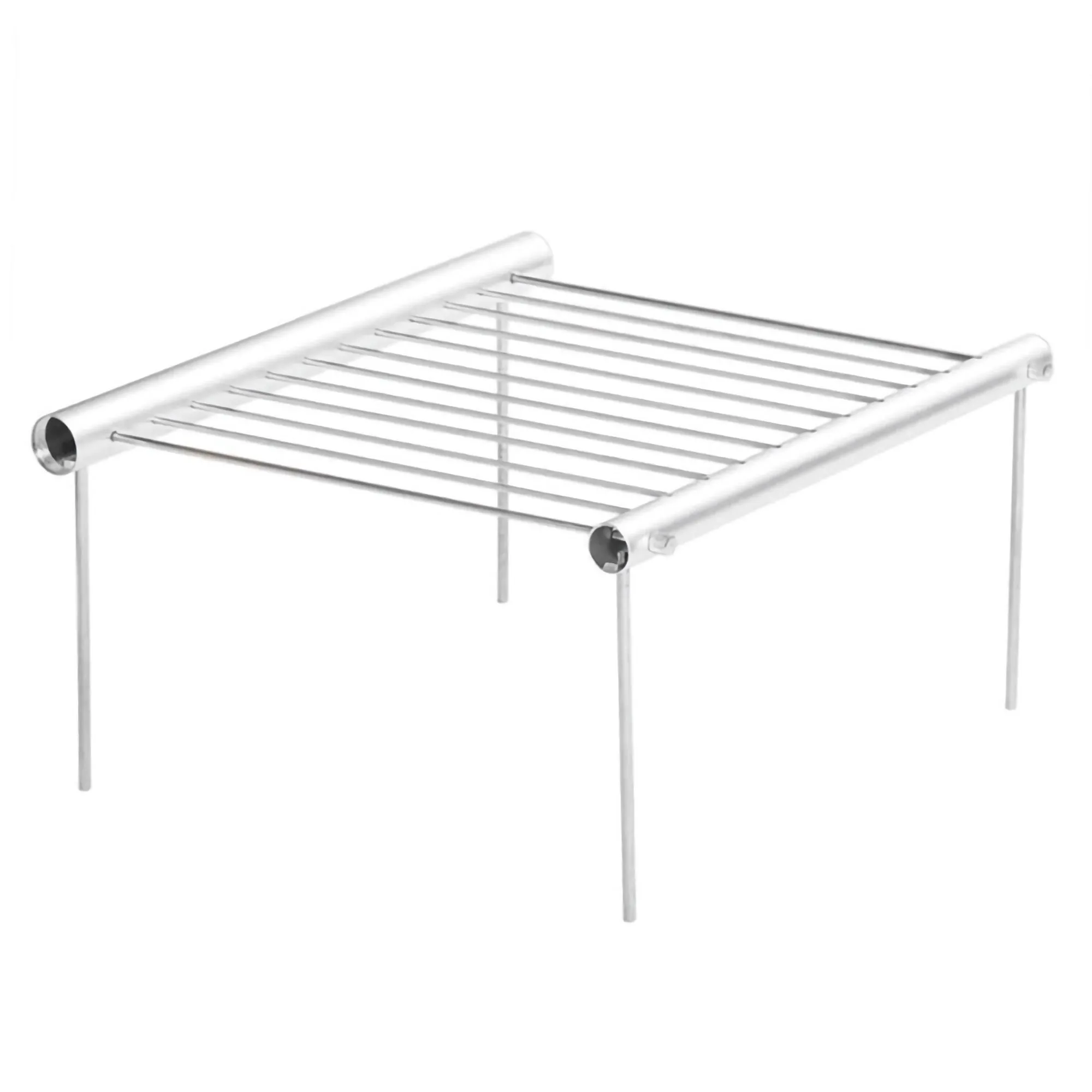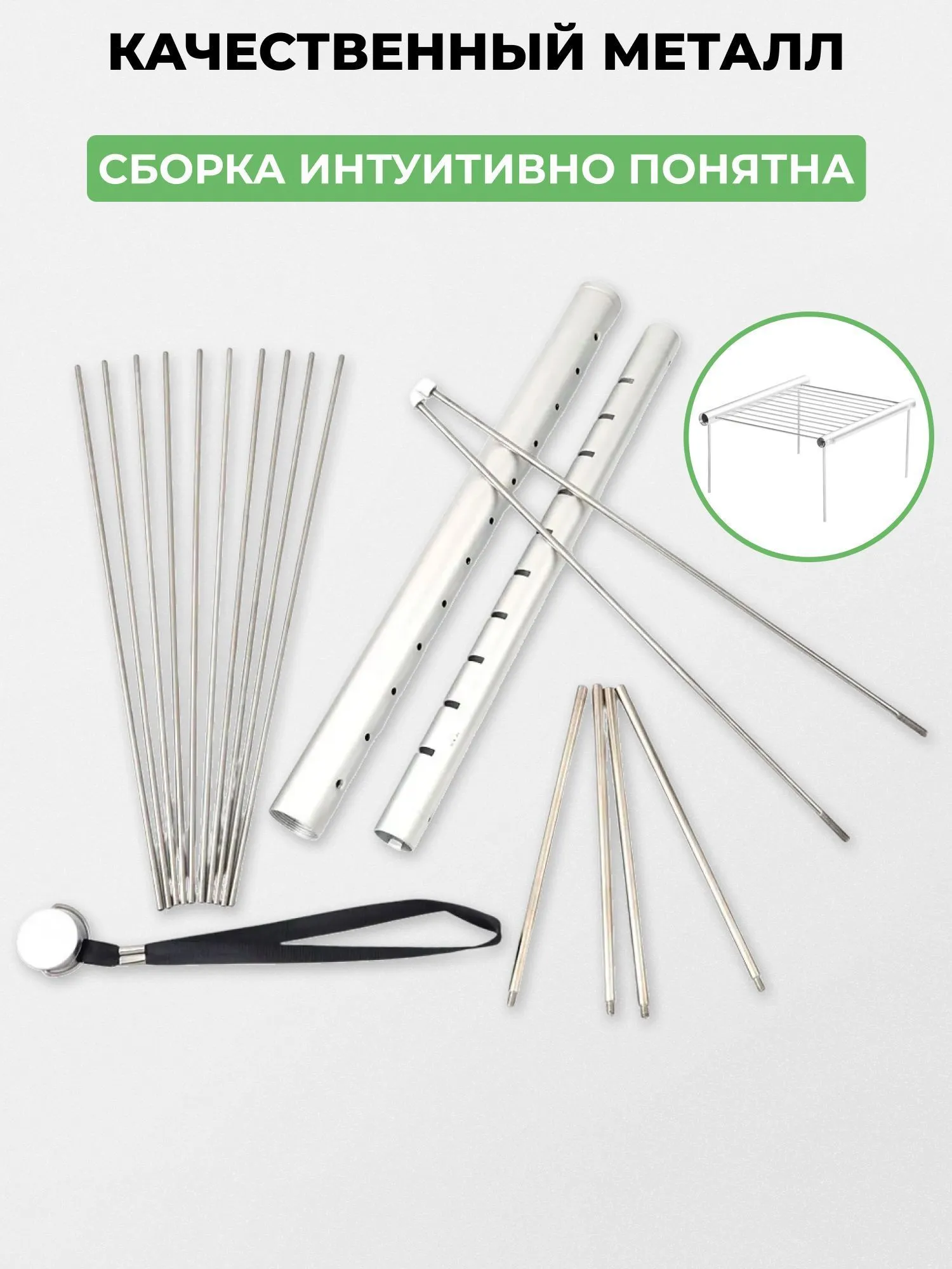 Готовить на раскладном мангале можно не только мясо, но и другие продукты ‒ рыбу, сосиски, овощи. Несмотря на кажущуюся хрупкость, на устройство можно установить небольшой котелок и без проблем сварить уху или вскипятить чай.